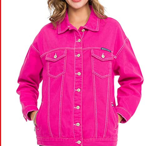 Cipo & Baxx Damen Jacke WJ211 Fuchsie – Klassische Jeansjacke im Modernen Casual Streetwear Look mit Knopfleiste & Brusttaschen – Vielseitige Übergangsjacke für Alltag & Freizeit - WJ211 Fuchsie XL