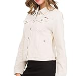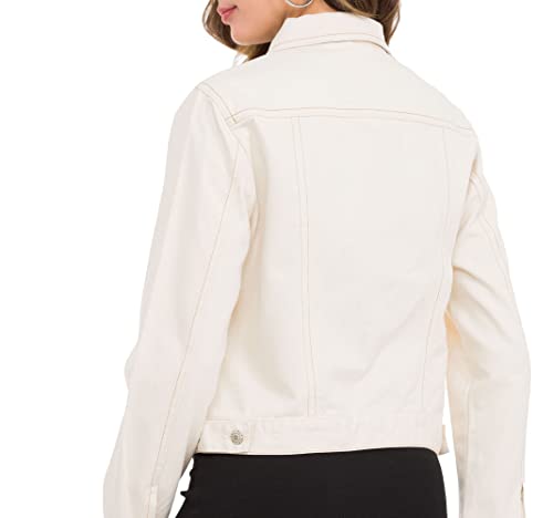 Cipo & Baxx Damen Jacke WJ212 Beige – Stylische Jeansjacke im Casual Streetwear Look mit Knopfleiste & Brusttaschen – Übergangsjacke für Alltag & Freizeit – WJ212 Beige S