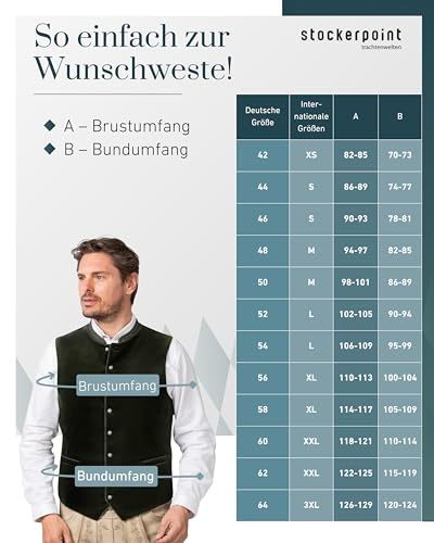 Stockerpoint Herren Trachtenweste Lorenzo I Größen 46-64 I Traditionelle & hochwertige Weste mit verstellbarem Riegel I Perfekt für Trachten & Festlichkeiten