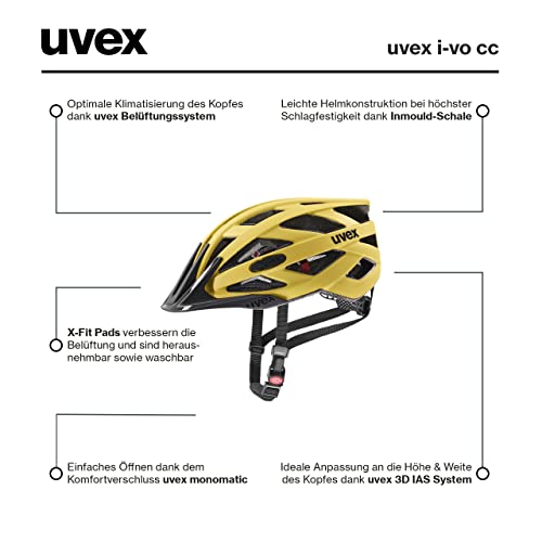 uvex i-vo cc - Leichter Allround-Helm für Damen und Herren - individuelle Größenanpassung - erweiterbar mit LED-Licht - sunbee - 52-57 cm