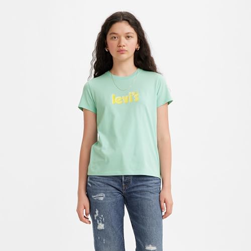 Levi's Damen The Perfect Tee T-Shirt,Offset Poster Logo Pastel Blue,XS
