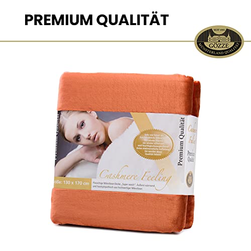 Gözze - Premium Cashmere-Feeling Wohn- und Kuscheldecke, 500 g/m², 130 x 170 cm - Zimt