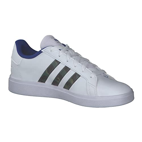 adidas Unisex Kinder Grand Court Lifestyle Lace Tennis Shoes, Cloud White / Green Oxide / Royal Blue, 37 1/3 EU