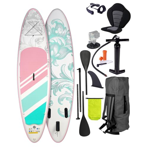 BRAST® SUP Board Lady | Aufblasbares Stand up Paddle Set für Frauen | 300cm viele Modelle | inkl. Sonderzubehör | 2in1 Paddel Kajak-Sitz Action-Cam-Halterung Fußschlaufe Pumpe Rucksack | Water 300