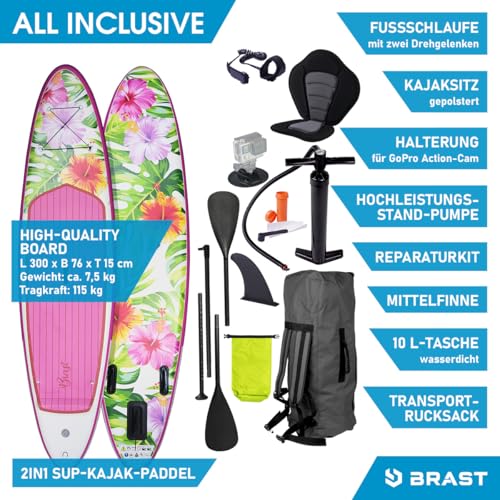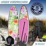 BRAST SUP-Board Aufblasbares Stand up Paddle Set für Frauen viele Modelle, (300x76x15cm), incl. Zubehör, 5 Jahre Garantie, Fußschlaufe Paddel Pumpe Rucksack