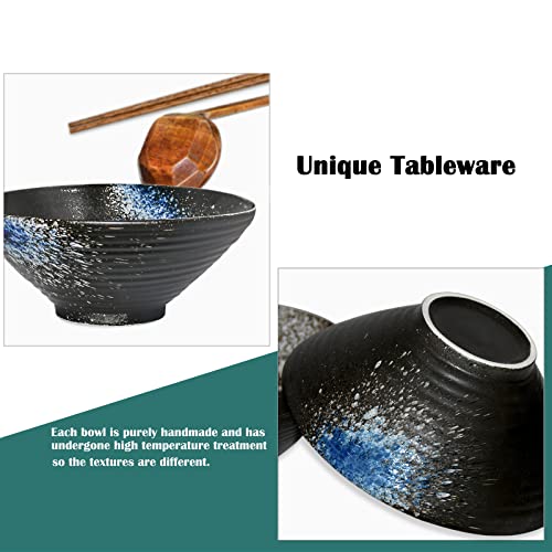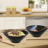 Sosayet Ramen Schüssel Keramik, 2 Sets Ramen Bowl mit Löffel und Essstäbchen, Ru