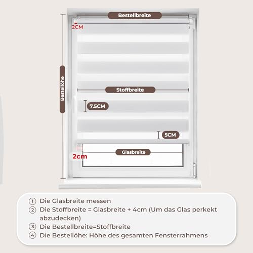 Allesin Doppelrollo Klemmfix ohne Bohren & mit Bohren, Duo Rollos für Fenster und Tür, Klemmrollo Fensterrollo lichtdurchlässig, Sichtschutz und Sonnenschutz, 35x210cm (BxH), Weiß