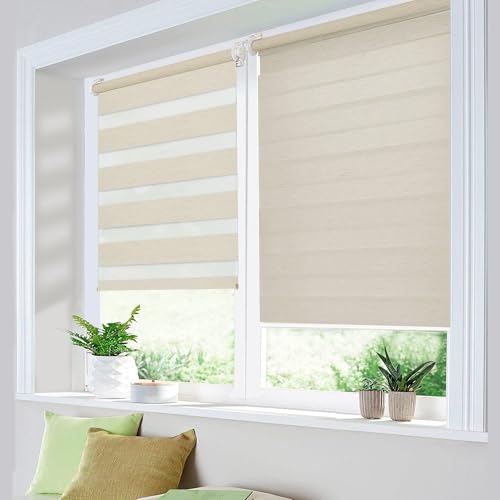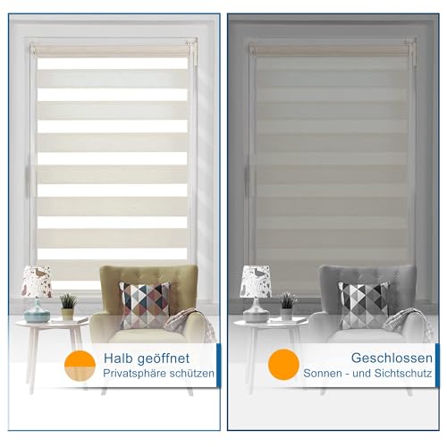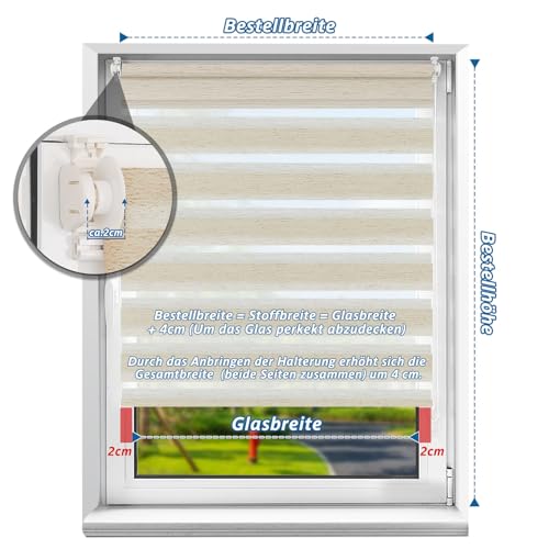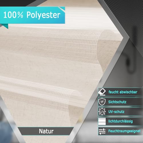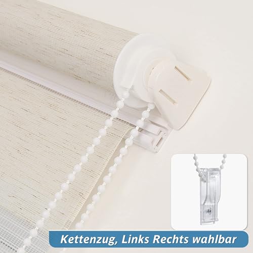 bobodeco Doppelrollo klemmfix ohne Bohren Duo Rollos für Fenster mit Klemmträger, Fensterrollo lichtdurchlässig & verdunkelnd Wandmontage Sichtschutz - Natur B100 x H220 cm