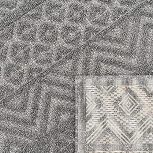 Paco Home Outdoor Teppich wetterfest & langlebig Moderne Boho-Designs mit 3D-Effekt Skandi-Look UV-beständig & robust für Balkon, Garten, Wohnzimmer & Küche, Grösse:160x220 cm, Farbe:Grau