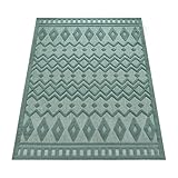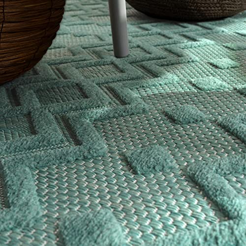 Paco Home Outdoor Teppich wetterfest Boho & Skandi 3D-Optik für Terrasse, Balkon & Garten 60x100 cm, Türkis 3