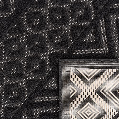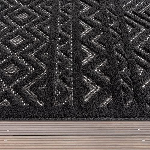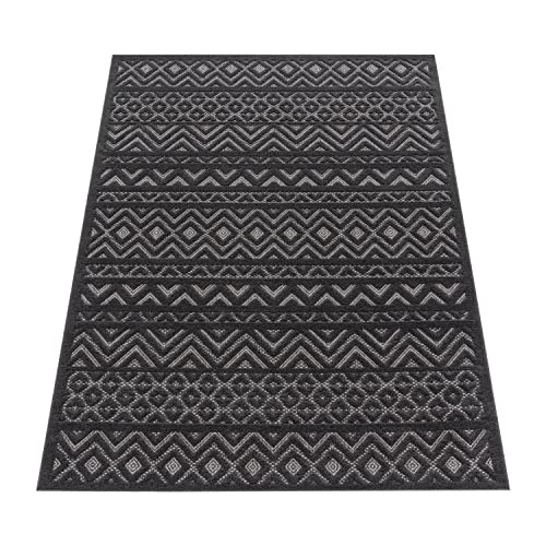 Paco Home Outdoor Teppich wetterfest & langlebig Moderne Boho-Designs mit 3D-Effekt Skandi-Look UV-beständig & robust für Balkon, Garten, Wohnzimmer & Küche, Grösse:160x220 cm, Farbe:Anthrazit