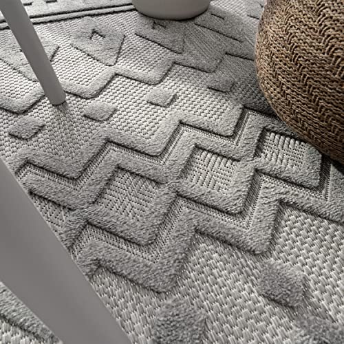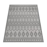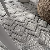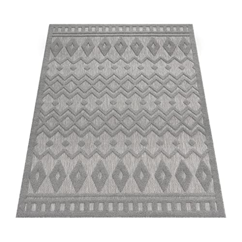 Paco Home Outdoor Teppich wetterfest & langlebig Moderne Boho-Designs mit 3D-Effekt Skandi-Look UV-beständig & robust für Balkon, Garten, Wohnzimmer & Küche, Grösse:60x100 cm, Farbe:Grau 3