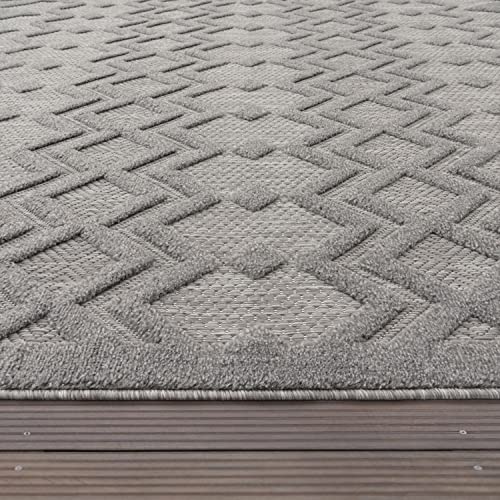 Paco Home Outdoor Teppich wetterfest Boho & Skandi 3D-Optik für Terrasse, Balkon & Garten 60x100 cm, Grau 3