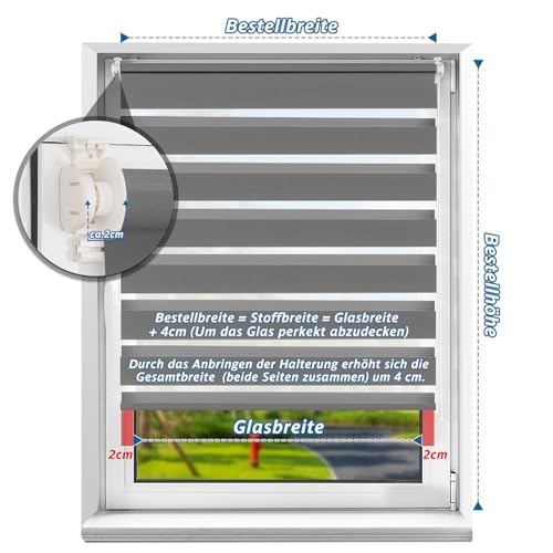 bobodeco Doppelrollo klemmfix ohne Bohren Duo Rollos für Fenster mit Klemmträger, Fensterrollo lichtdurchlässig & verdunkelnd Wandmontage Sichtschutz - Anthrazit B95 x H150 cm