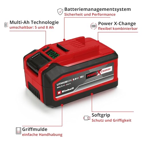 Einhell Original 18V 5-8 Ah Multi-Ah Power X-Change Plus Akku (18V, für alle PXC-Geräte, Ladezustandsanzeige, Batteriemanagementsystem, situativ angepasste Ladezyklen, ohne Ladegerät)