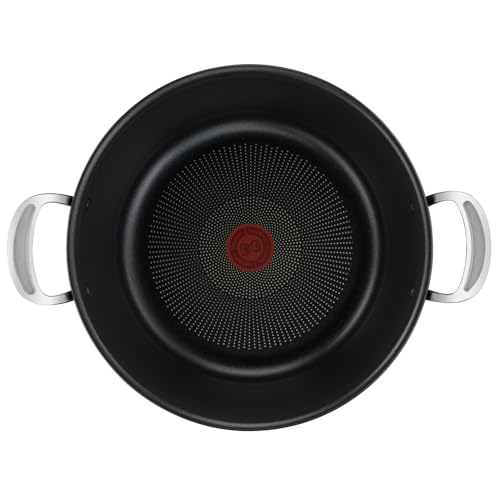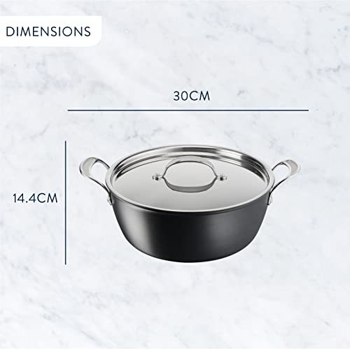Tefal Jamie Oliver Batch-Cooking Set, Harteloxierter Kochtopf Induktion 30 cm, Antihaftversiegelung, für große Mengen, Thermo-Signal bei idealer Brattemperatur, Edelstahl/Schwarz, H91254