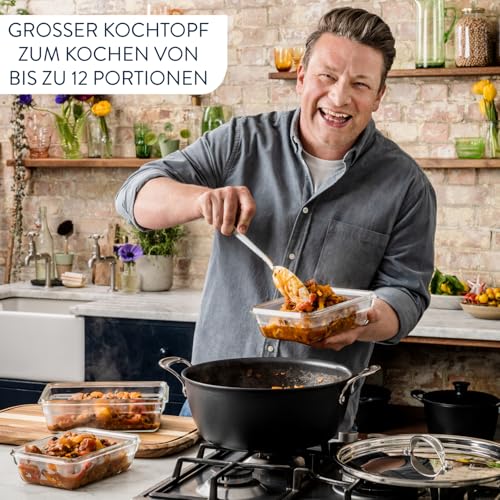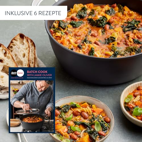 Tefal Kochtopf Jamie Oliver Batch-Cooking Set Induktion 30 cm, Aluminium, Antihaftversiegelung, Thermo-Signal, Rezeptbuch, H91254