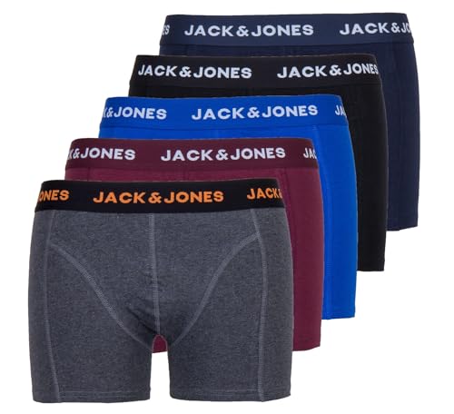 JACK & JONES Herren Unterhosen Shorts Boxershorts Trunks 5er Pack, Farbe:Schwarz, Wäschegröße:M, Artikel:- Black/Blue