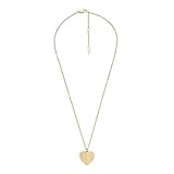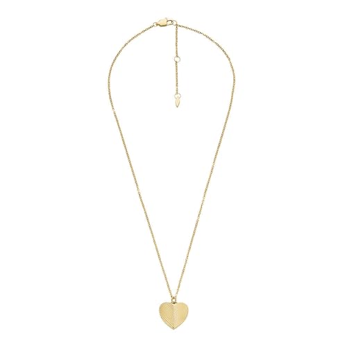 FOSSIL Damen goldfarbenes Edelstahlcollier mit herzförmigem Anhänger mit Karabinerverschluss, Cremiges Gold