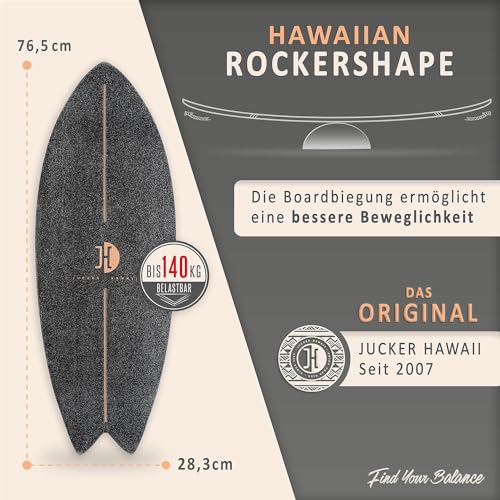 JUCKER HAWAII Balance Board Ocean Rocker Black - Balanceboard aus 100% Echtholz mit Korkhalbkugel, Korkrolle und Matte - Gleichgewichtstrainer für Kinder und Erwachsene - Surf Balance Board