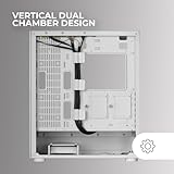 Mars Gaming MC-ULT, Custom XXL E-ATX Gaming-Gehäuse, Dual 90° Rahmenloses Gehärtetes Glas + Seitentür, Volle Flüssigkühlung, PC Tower mit Dual Vertical Chamber Design, Weiß