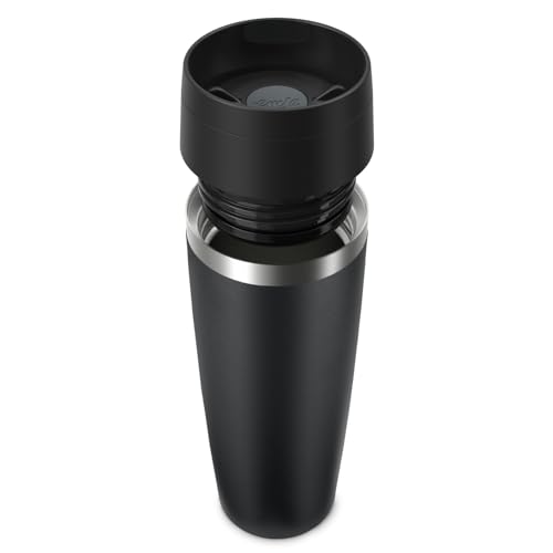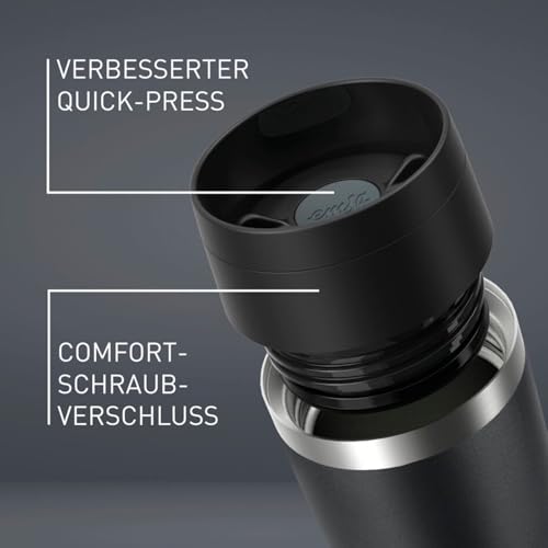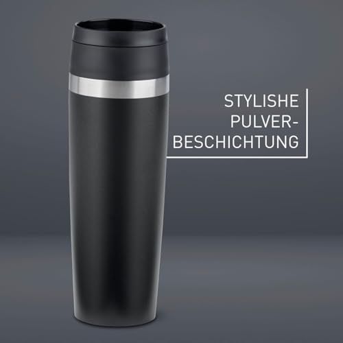 Emsa N2023550 Travel Mug Classic 0,5 Liter, neuer Komfort-Schraubverschluss, Pulverbeschichtung, Edelstahl, 6h heiß und 12h kalt, 100% dicht, 360°-Trinköffnung, Edelstahl, schwarz