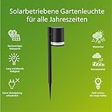 Philips Outdoor Solar Fyce Sockelleuchte Spiess 1,5W, Tageslichtsensor, 2700 Kelvin, IP44 wetterfest, schwarz