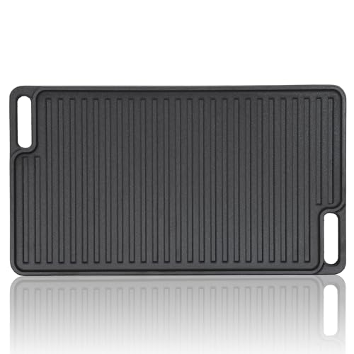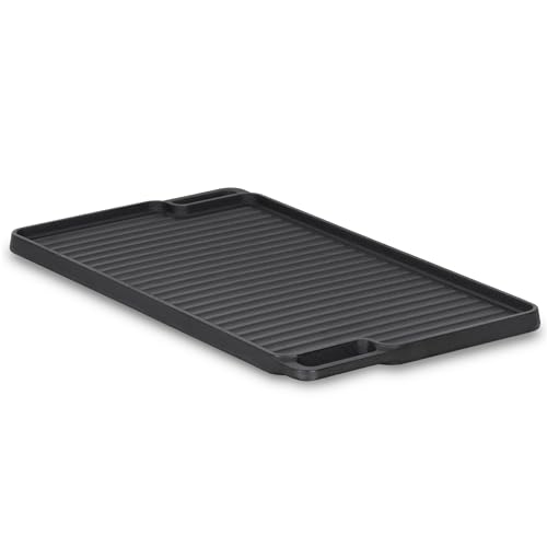 BBQ-Toro Gusseisen Grillplatte mit Griffen | 45 x 25,5 cm | Wendeplatte, beidseitig verwendbar | Rechteckig, Universal und Massiv | Grillblech für Holzkohle und Gas, Grillzubehör, Grillpfanne