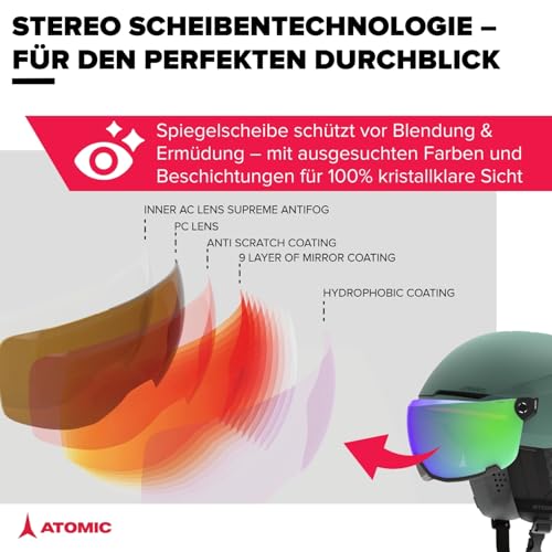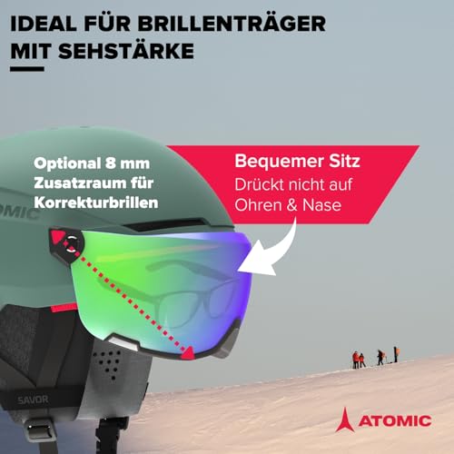 ATOMIC SAVOR VISOR STEREO Skihelm mit Visier - Green - Größe L - Snowboard- & Ski-Helm mit Brille - 360° Fit System & Active Aircon Belüftungssystem - Holo Core für maximale Stoßdämpfung
