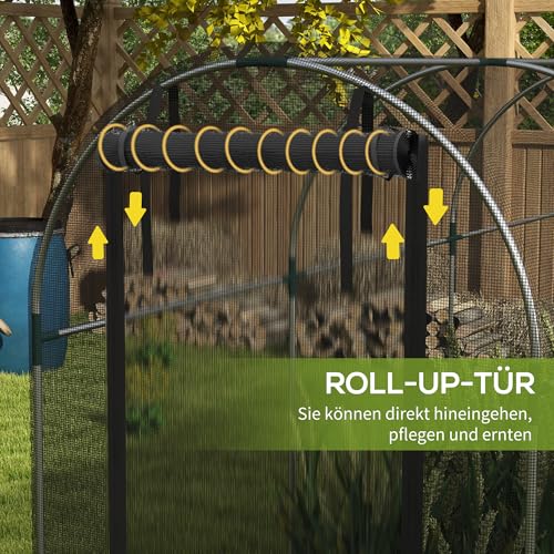 Outsunny Insektenschutznetz 1,2 x 3,6 m Gartennetz mit Tür, Pflanzenschutzzelt, Schädlingsschutznetz mit Stahlrahmen, für Garten, Balkon, HDPE, Schwarz