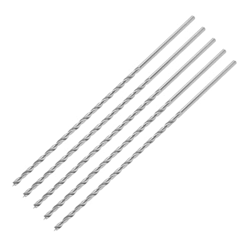 ENT 50444 Holzspiralbohrer Ø 4 mm im 5er-Pack, extra lang 200 mm, HSS-G, mit Zentrierspitze und Vorschneider, NL 135, Schaft zylindrisch