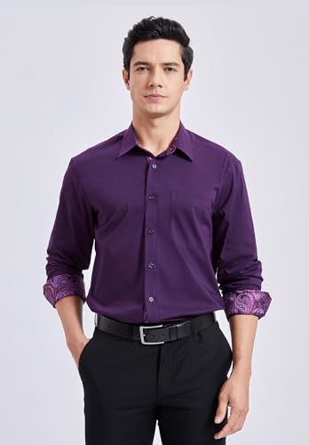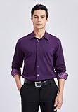 HISDERN Herren-Hemd für formelle Kleidung, klassisch, langärmelig, lässig, Button-Down-Kragen, reguläre Passform, Lila, S