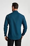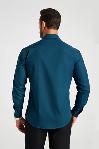 HISDERN Herren Hemd Blaugrün Langarm Business Herren Hemd Formale Regular Fit Freizeithemden Button Down Arbeit Hochzeit mit Taschen M