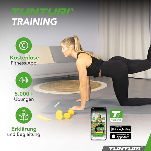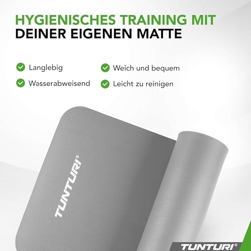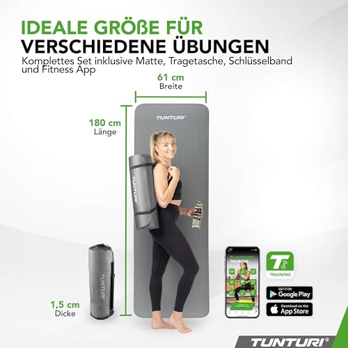 Tunturi Gymnastikmatte - Fitnessmatte extra dick - Rutschfest - Yogamatte - 1,5 cm dick grau 180 CM