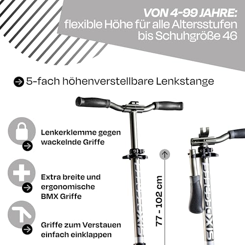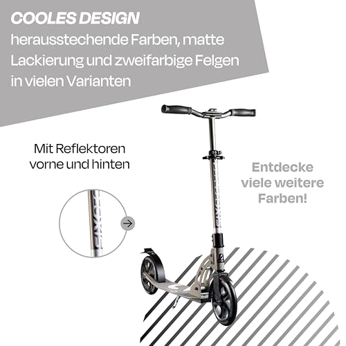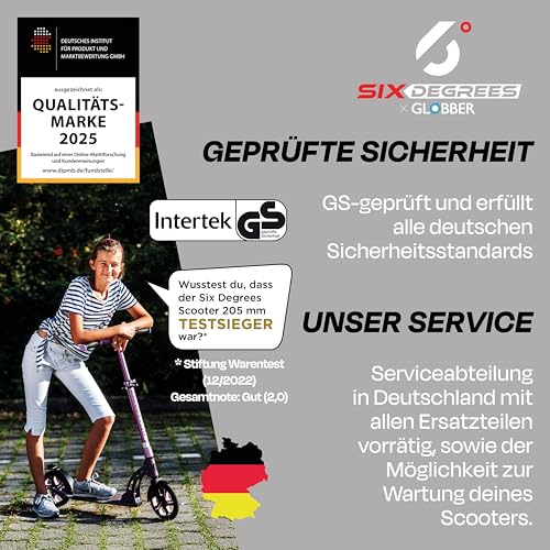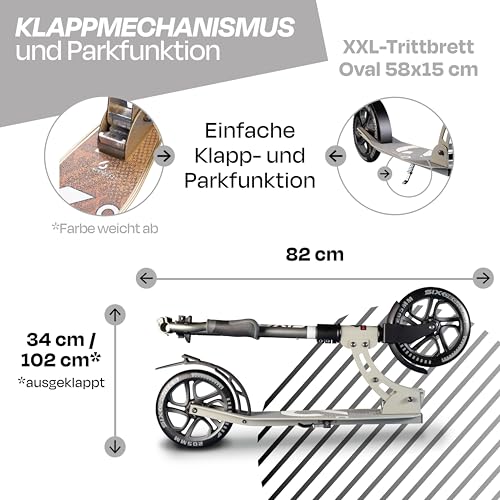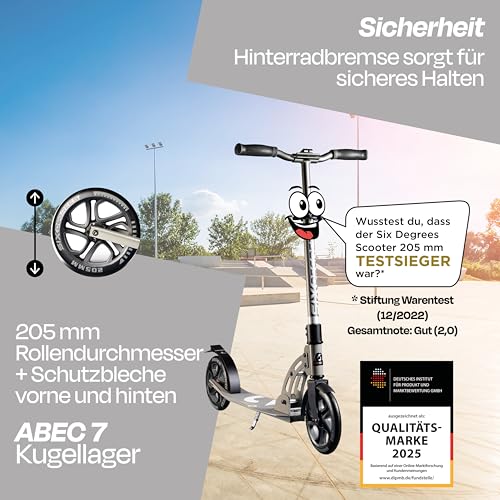 Six Degrees Aluminium Scooter mit Klappmechanismus u. Ständer, 205 mm, höhenverstellbar, GS-geprüft, grau, TESTSIEGER