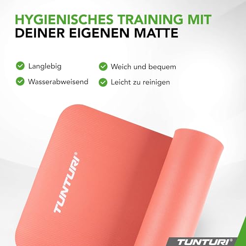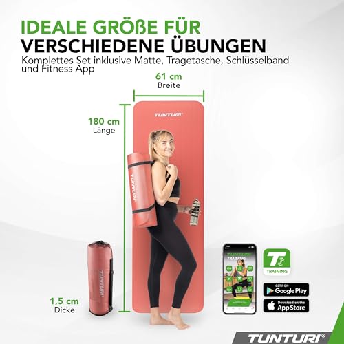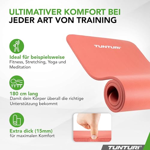 Tunturi Gymnastikmatte - Fitnessmatte extra dick - Rutschfest - Yogamatte - 1,5 cm dick rosa orange 180 CM