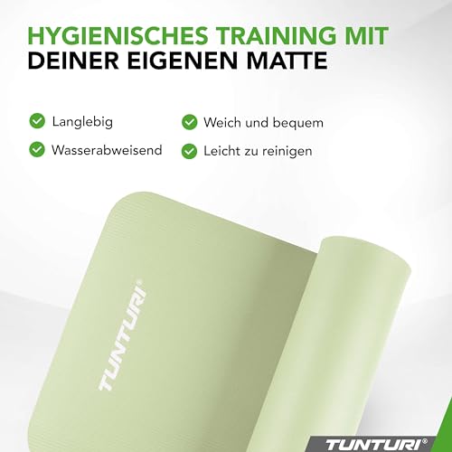 Tunturi Dicke NBRmatte 15mm - Rutschfest Gymnastikmatte - Mit Tragetasche - Für Yoga und Pilates - Sportmatte 180x60x1,5cm -Schadstofffrij - Besonders komfortabel - Minze