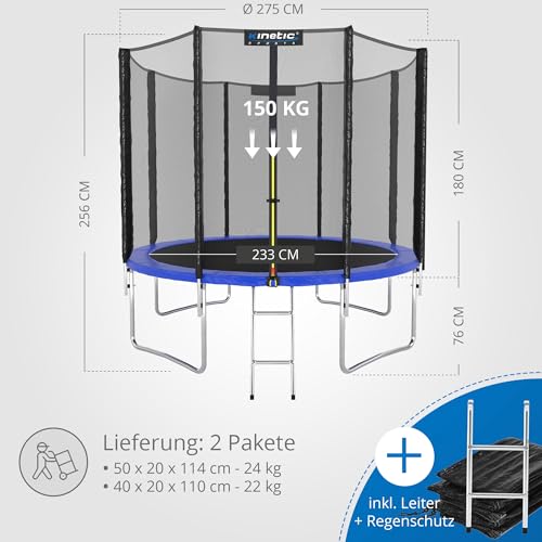 KINETIC SPORTS Trampolin Outdoor Salto Plus Ø 183/244/305/366/400/430/490 cm - Komplett-Set für Kinder, USA Sprungtuch, Netz, Randpolster, Leiter - bis zu 160kg Blau-4 Ø 275 cm Ø 275 cm, Blau-4