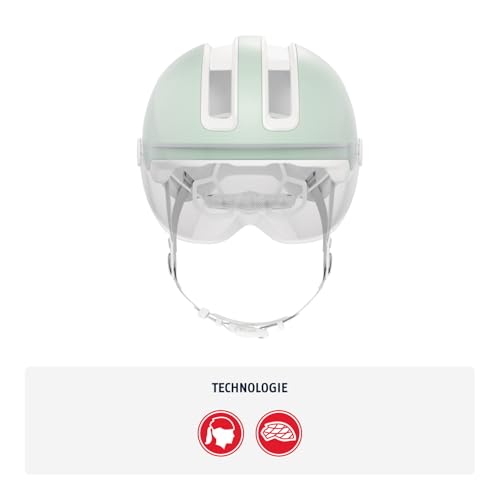 ABUS Stadthelm HUD-Y ACE - stylischer Fahrradhelm mit Visier und magnetischem, aufladbarem LED-Rücklicht - für Damen und Herren - Pure Mint, Größe M