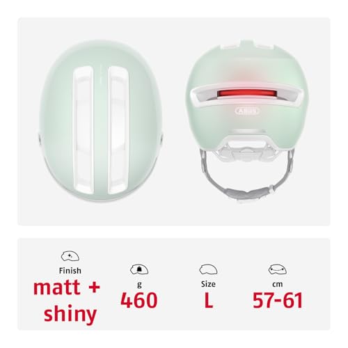 ABUS Stadthelm HUD-Y ACE - stylischer Fahrradhelm mit Visier und magnetischem, aufladbarem LED-Rücklicht - für Damen und Herren - Pure Mint, Größe L