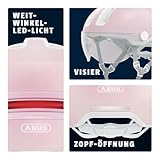 ABUS Stadthelm HUD-Y ACE - stylischer Fahrradhelm mit Visier und magnetischem, aufladbarem LED-Rücklicht - für Damen und Herren - Pure Rose, Größe L