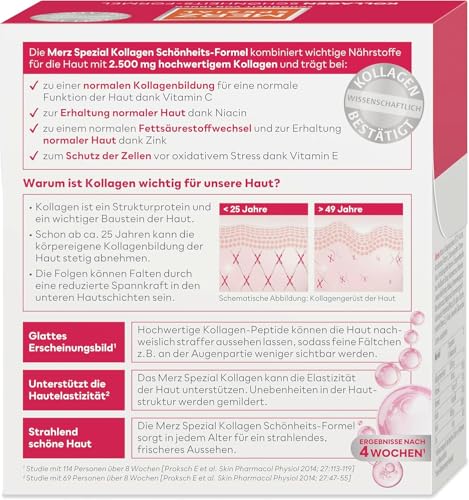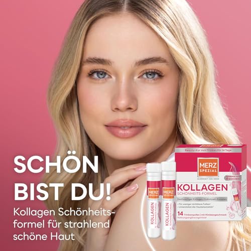 Merz Spezial Kollagen Schönheits-Formel Trinkampullen – Hochwertige Beauty Ampullen mit Kollagen-Hydrolysat-Komplex, Biotin, Niacin, Zink, Vitamin C & E – 14 x 25 ml