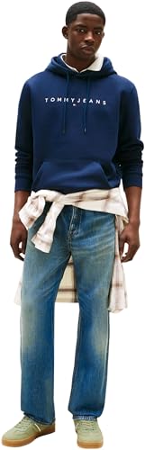 Tommy Jeans Herren TJM Reg Linear Logo Hoodie EXT Dm0dm20746 Pullover-Kapuzenpulli, Blue (Dark Night Navy), XXL EU