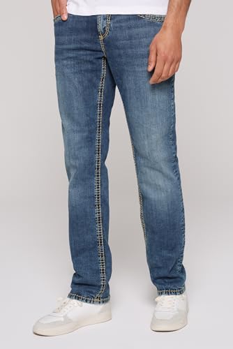 Camp David NI:CO Herren Jeans Regular Fit Used Blue | gerades Bein, mittlere Leibhöhe, Five-Pocket & Zip-Fly, kontrastreiche Steppnähte, Vintage-Waschung und komfortabler Stretch 32 32