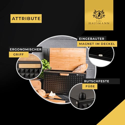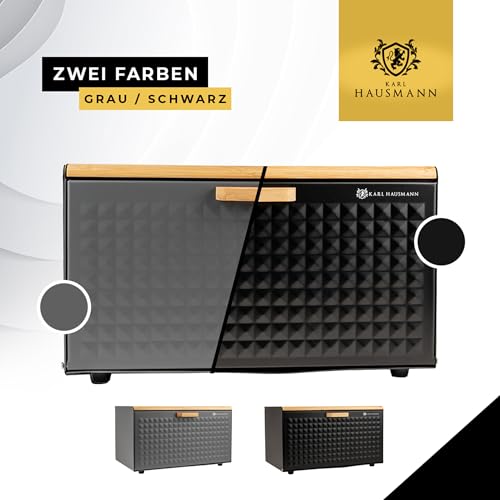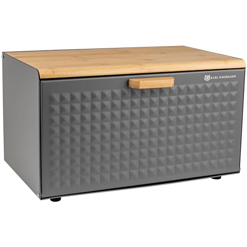 KARL HAUSMANN Bambus Brotkasten mit Grau Deckel - 35x25x15,5 cm - Brotbox Küche- Bread Box - Brotkästen holz - Brotkorb metall - Brot Aufbewahrung - Brot Frischhaltebox - Breadbox Container