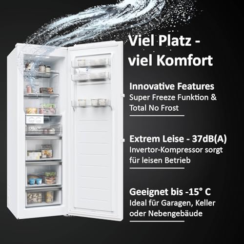Haier Gefrierschrank mit Abtauautomatik und Eiswürfelbereiter I Instaswitch H4F306WDH1 I Total No Frost Tiefkühlschrank, 301 L Kapazität I Eisschrank auch als Kühlschrank nutzbar I Freezer mit Wi-Fi