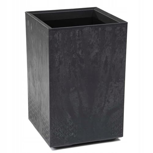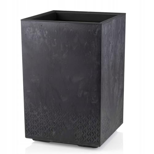 HowHomely Blumentopf Schwarz 59 x 40 x 40 cm Pflanzkübel Groß Außen - Pflanzkasten auf Rollen mit Abflussstopfen - Pflanzkübel Rechteckig Betonoptik für Garten und Terrasse