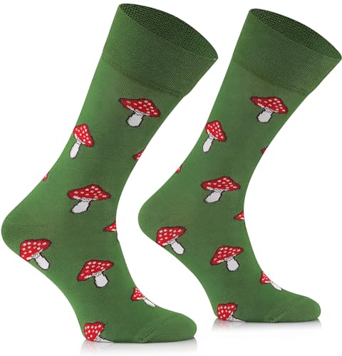 TODO Roter Fliegenpilz Socken Damen und Pilze Socken Herren, Coole Socken mit Motiv - Lustige Fliegenpilz Socken 35-38
