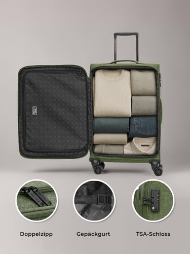 Redolz, Koffer, Essentials 12 MEDIUM 4-Rollen Trolley 67 cm mit Dehnfalte, Grün, (61 l)