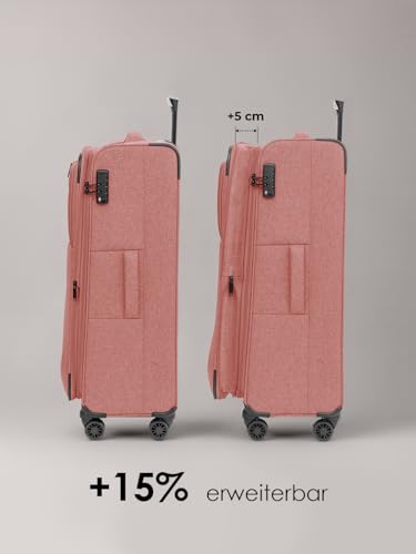 Redolz, Koffer, Essentials 12 THREE SET 4-Rollen Kofferset 3-tlg. mit Dehnfalte, Rosa, (201 l)